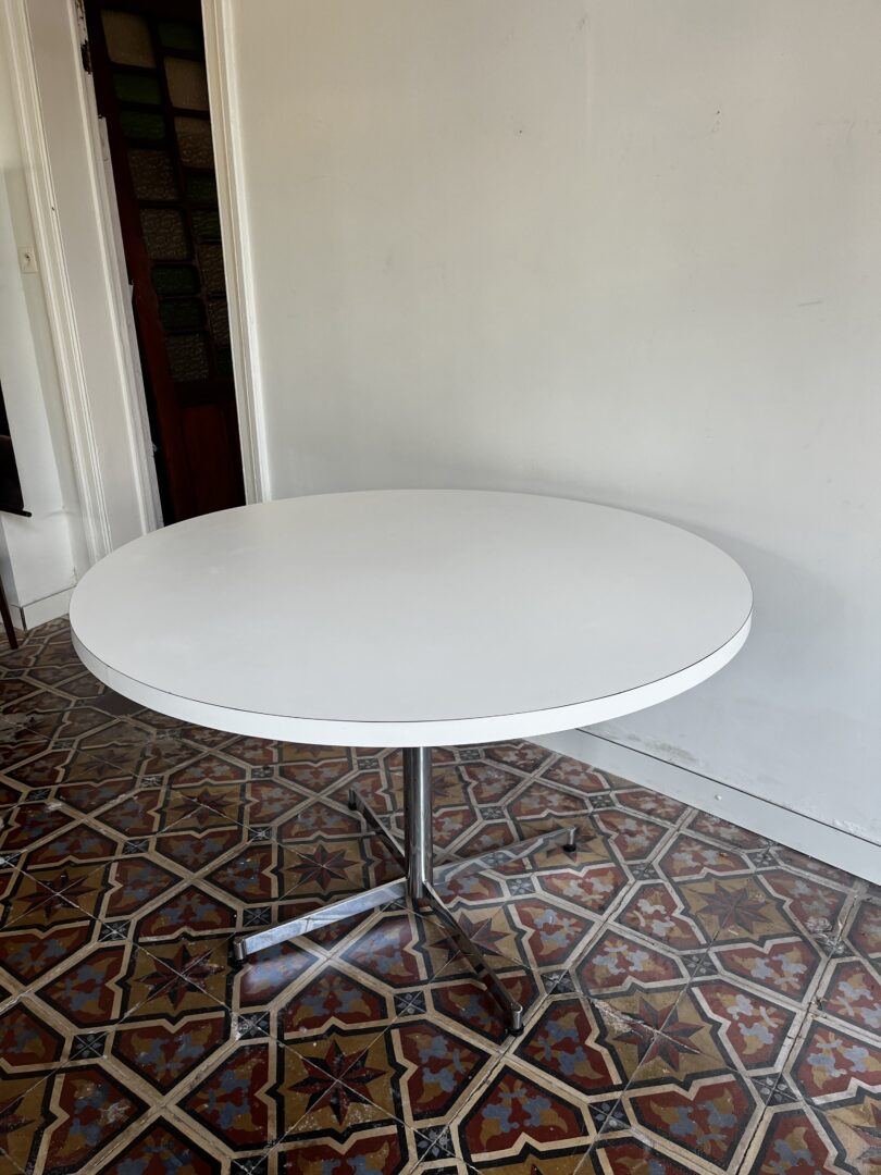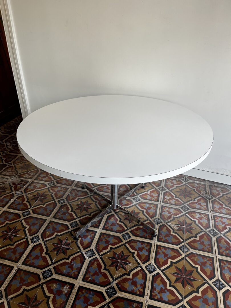 On a budget en op zoek naar een ronde eettafel? Search no more, zeggen we. Eentje met een groot rond blad met stervoet in chroom hebben we in de aanbieding.