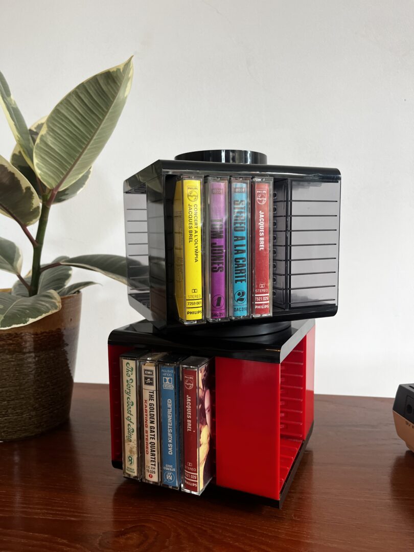Voor de liefhebber van analoge muziek vonden we deze modulaire, draaibare houders voor je favoriete cassettebandjes.